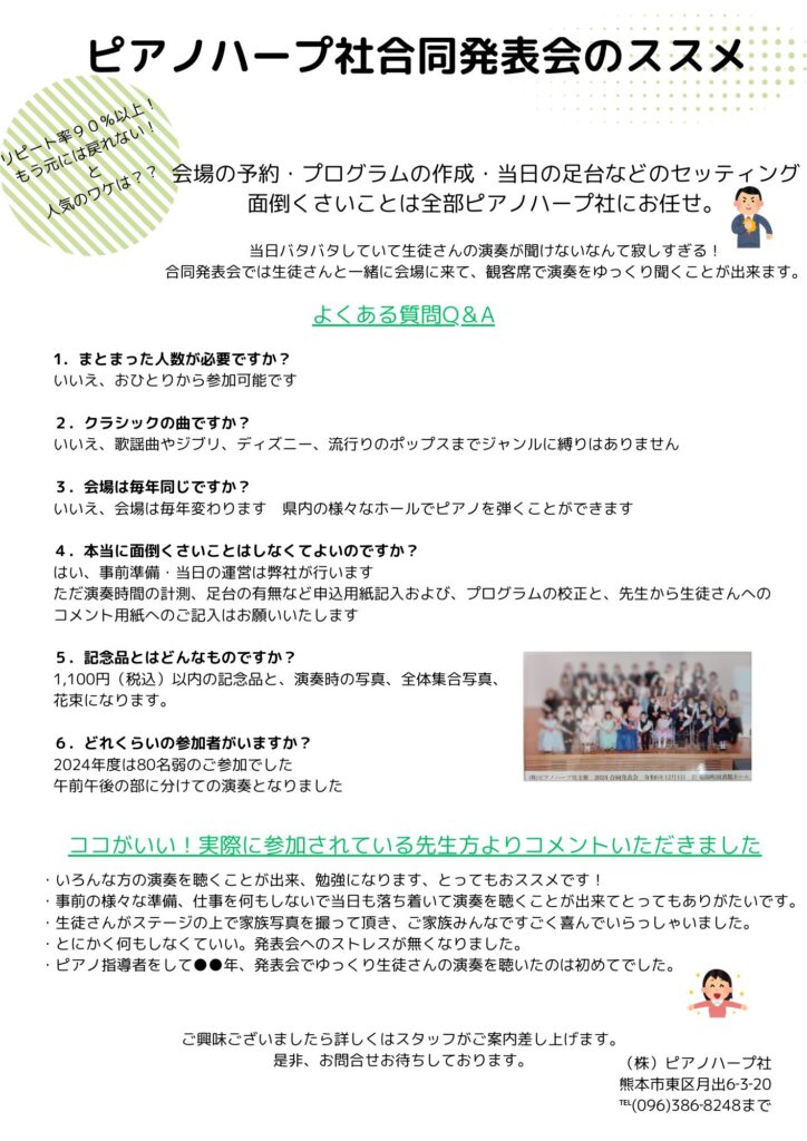 個人宅教室を営む先生型向けの合同発表会です。