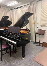 店内には、グランドピアノを備えた2部屋の練習室を完備しています。